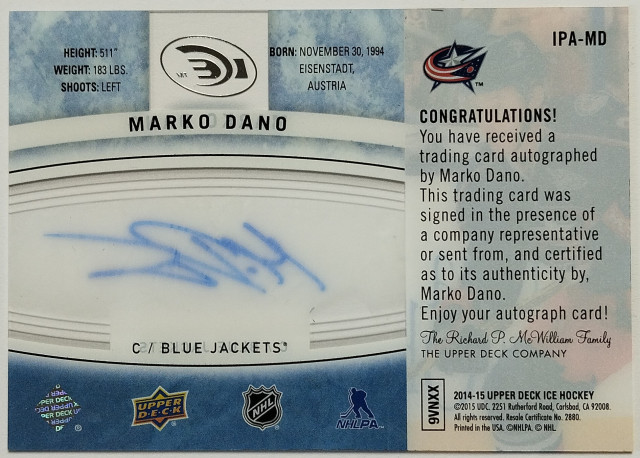 2014-15 Upper Deck Ice Premieres Autographs #IPA-MD Marko Daňo