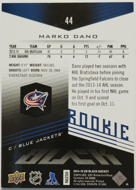 2014-15 Upper Deck Ice UD Black #44 Marko Daňo RC SN 080/199