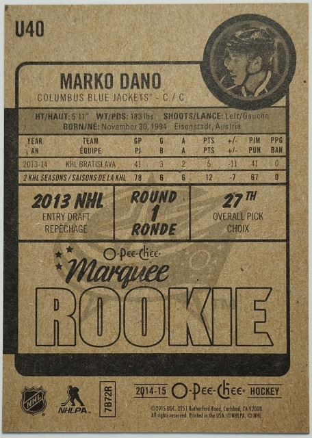 2014-15 Upper Deck O-Pee-Chee Update Red #U40 Marko Daňo