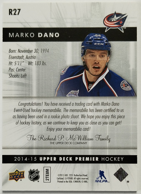 2014-15 Upper Deck Premier Rookie Jerseys Silver Spectrum #R27 Marko Daňo SN 048/125