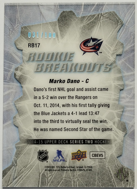 2014-15 Upper Deck Rookie Breakouts #RB17 Marko Daňo SN 031/100