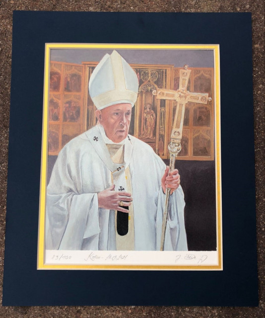 LIMITOVANÁ EDÍCIA portrétu Sv. Otca FRANTIŠKA (100 kusov). Všetky sú číslované a podpísané autorom Jaroslavom Dvorským.