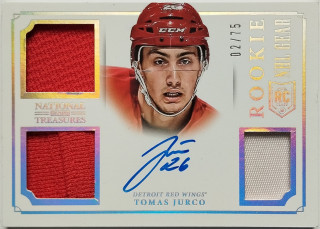 2013-14 Panini National Treasures NHL Rookie Gear Autographs #RG-TJU Tomáš Jurčo SN 02/75