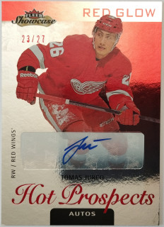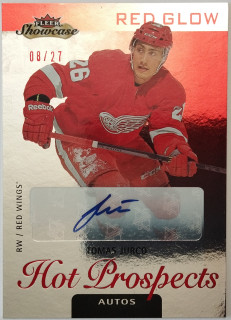 2013-14 Fleer Showcase Hot Prospects Autos Red Glow #150 Tomáš Jurčo RC SN 08/27